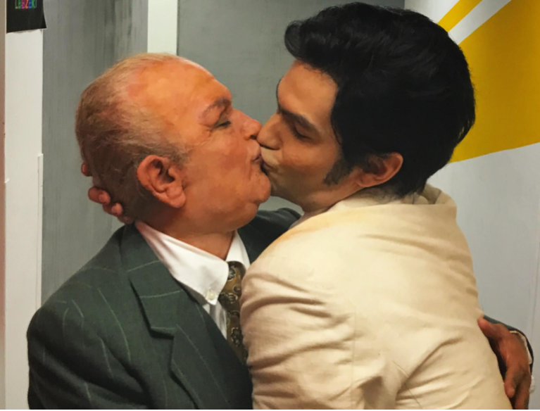 Kollégájuk, Király Linda, egy különleges pillanatot kapott el róluk, amikor éppen egy ikonikus csókjelentet adtak elő. A jelenet eredetileg egy több évtizedes fotóról vált ismertté.